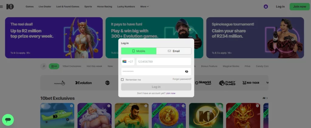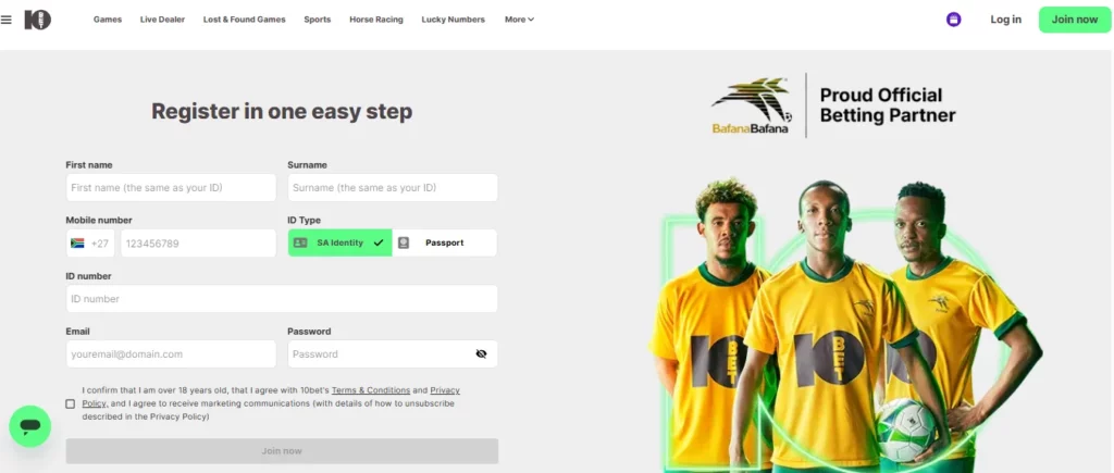 Creating an account at 10bet South Africa takes only a few minutes. The operator uses a simplified form that works the same way on desktop and mobile, making the process quick and accessible.