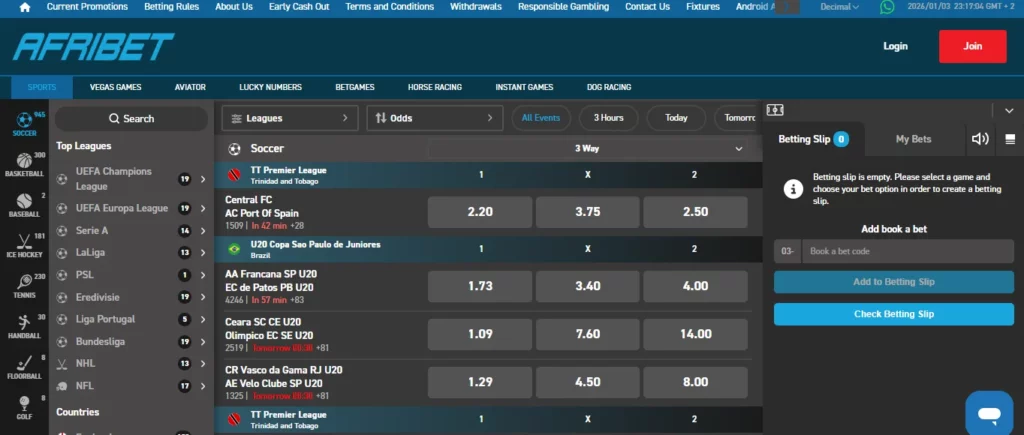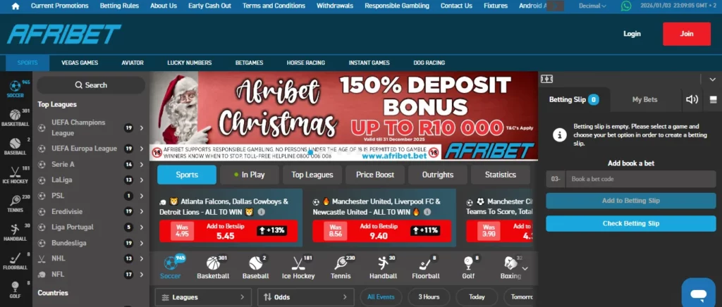 - Daily Special Bets and odds boosts. Afribet regularly offers “Daily Specials” and boosted odds on selected markets. These can include combo bets on football, rugby or cricket with slightly higher payouts than the standard line.
