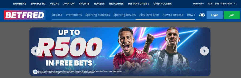 Betfred is also active offline, with a network of South African retail outlets and a sponsorship link to Manchester United, which helps keep the brand visible to local bettors.