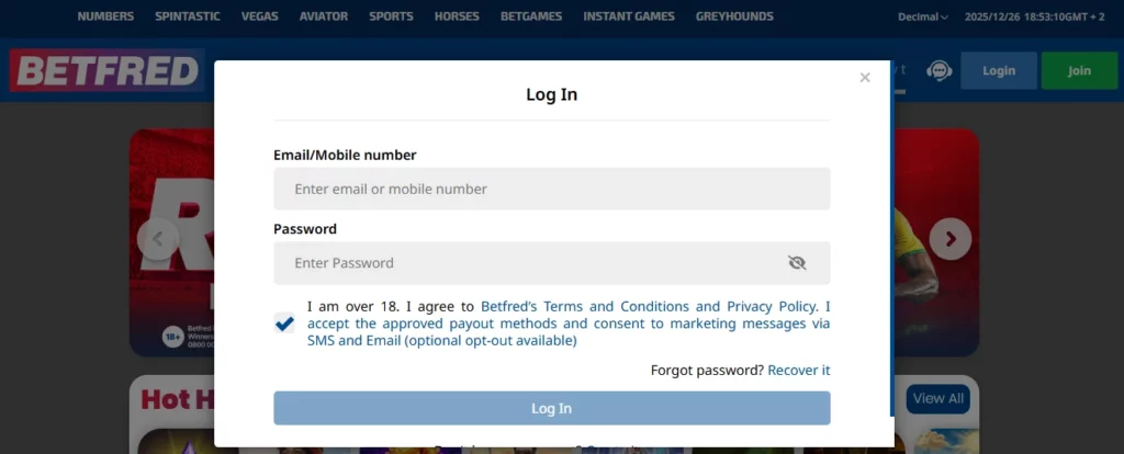 Logging into your Betfred account takes just a few seconds, and the process is equally convenient on both computers and smartphones. Before you begin, it is important to ensure that you are using the phone number and password you provided during registration — this will speed up access to the betting and casino sections.