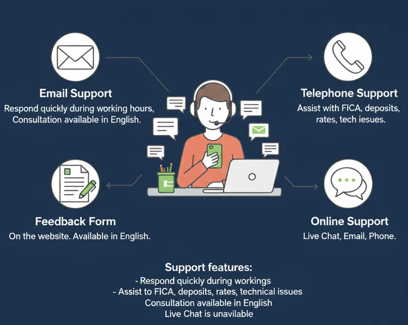 Types of Support ServiceEmail, phone, branch support, online contact form