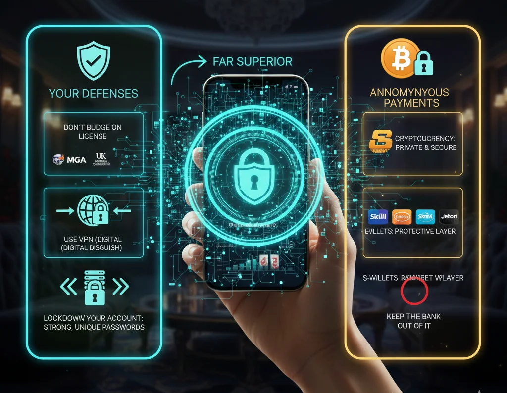 - Choose Anonymous Payments. When it comes to moving money, we always suggest keeping your bank account out of it. Just like we recommend for players at top Bahraini casinos, Cryptocurrency is the gold standard here. It’s fast, secure, and doesn’t require you to share any personal details. If crypto isn’t your thing, go with an e-wallet. They act as a protective layer between your bank and the casino, adding an extra level of encryption to every transaction.