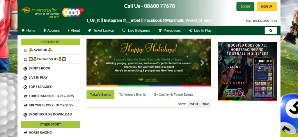 Marshalls World of Sport is a fully legal South African bookmaker and online casino, licensed by the KwaZulu-Natal Gambling and Racing Board. That means the site operates under clear local rules and accepts bets in South African rand, which is convenient if you live and bank in South Africa.