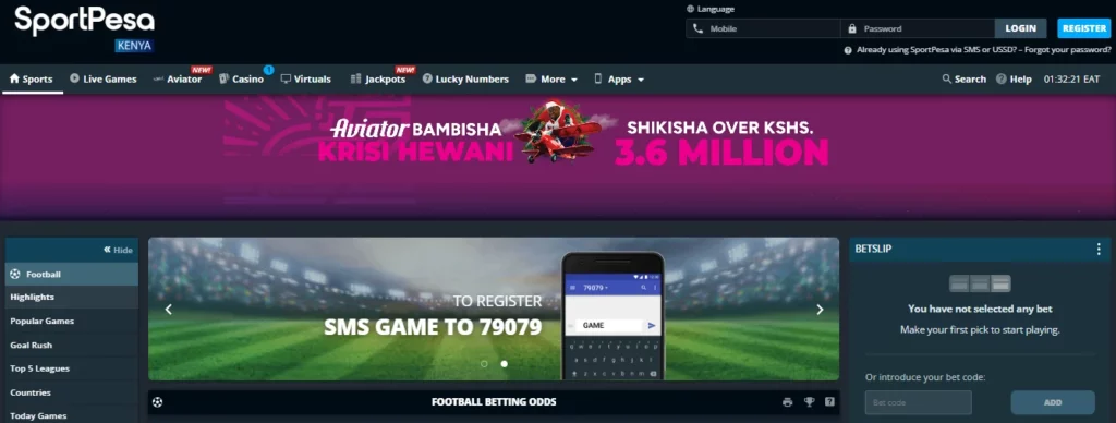 SportPesa makes the login process quick on both desktop and mobile. You only need your registered mobile number and password.