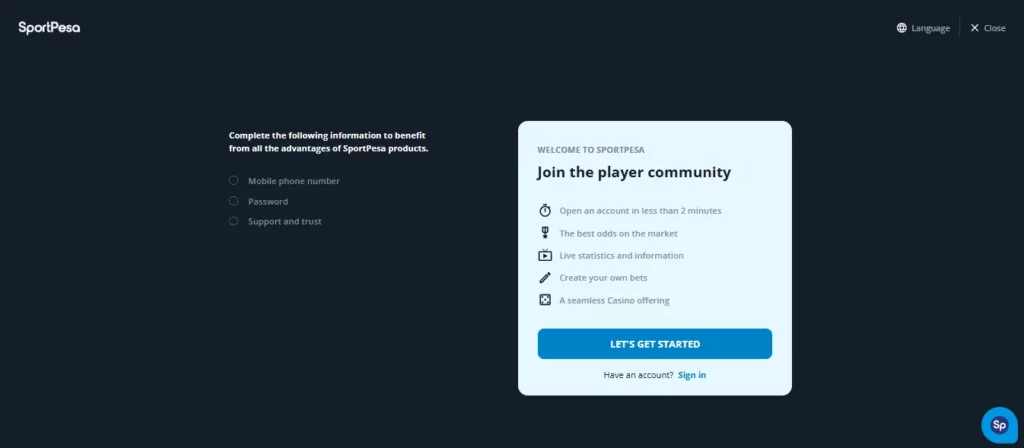 SportPesa keeps the registration process simple on both desktop and mobile. To open an account, you will need a valid South African mobile number, your personal details, and the ability to complete FICA verification after signup.