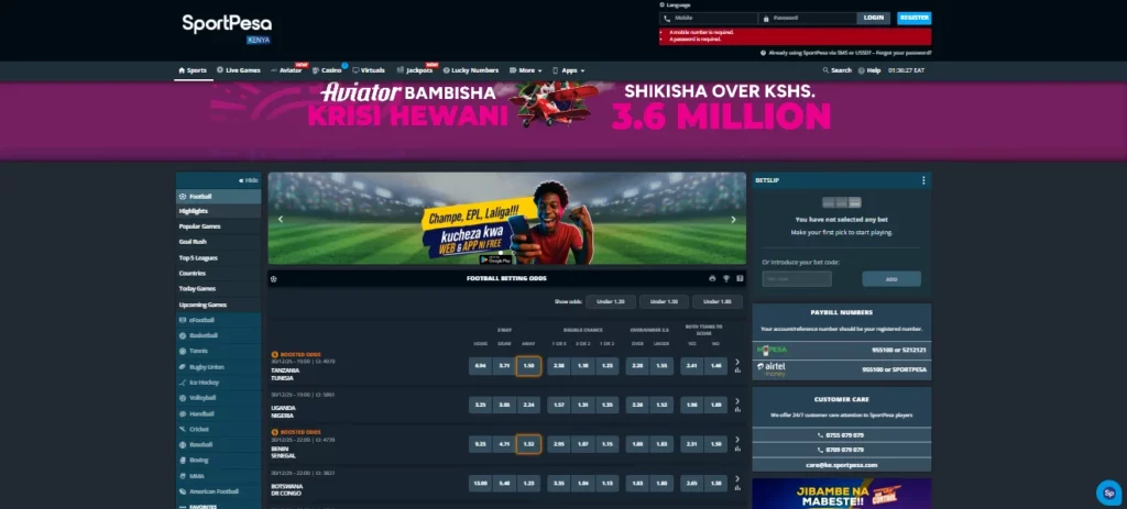 - Responsible gambling: as a licensed operator, SportPesa must display responsible gambling messages and provide ways to set limits or close accounts. These functions are usually accessible via the account settings or responsible gambling section in the footer.