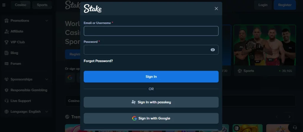 Stake operates with a Know Your Customer (KYC) procedure intended to validate player identity and ensure legal compliance.